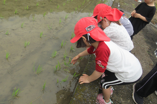 当園は自然豊かな環境の中にあり、自然に触れる機会が多く土、太陽、水と触れることをモットーにした保育園です。